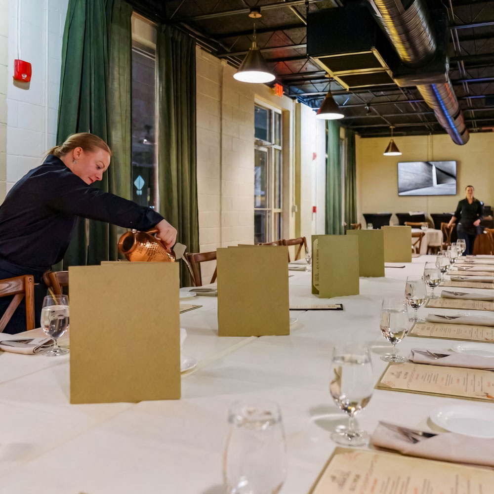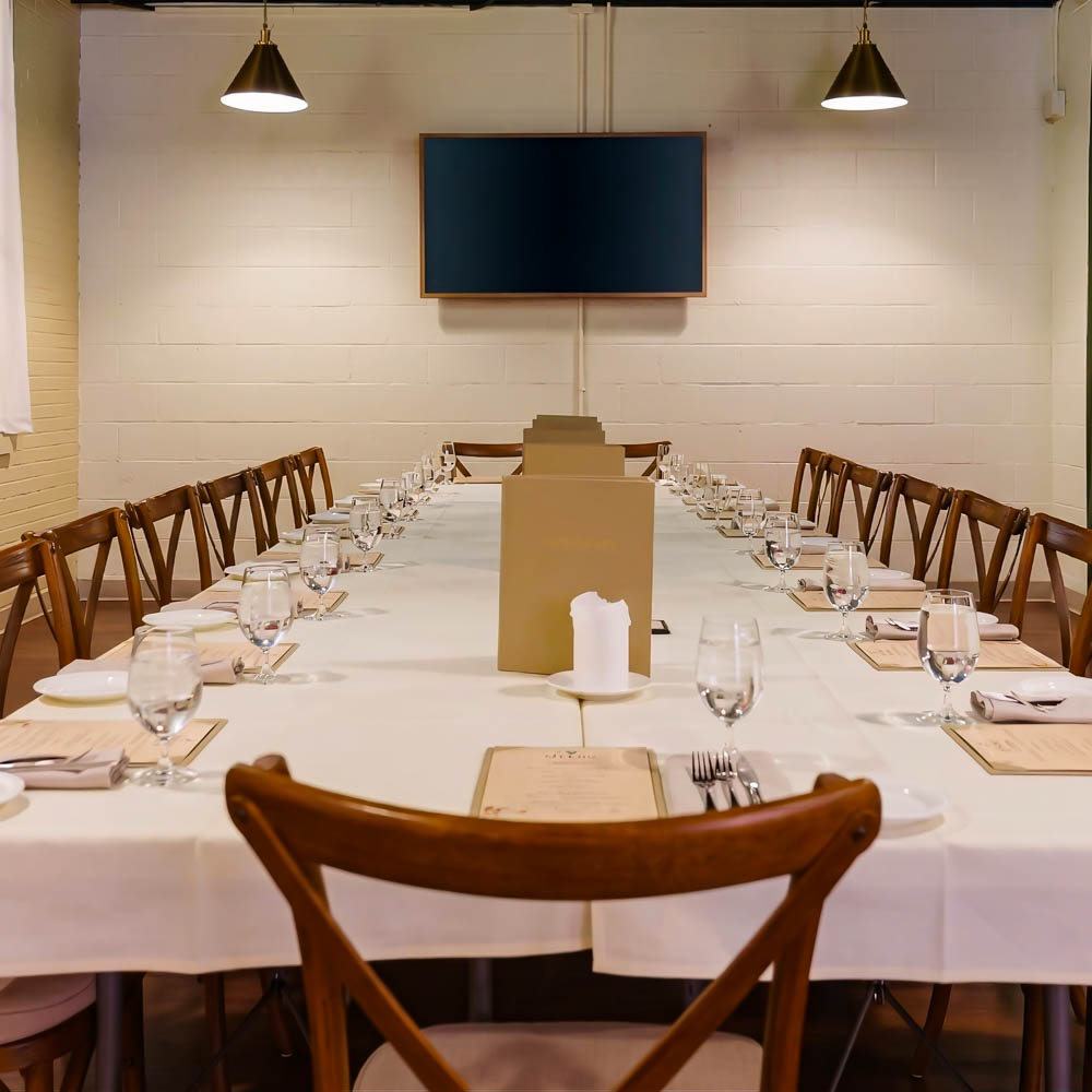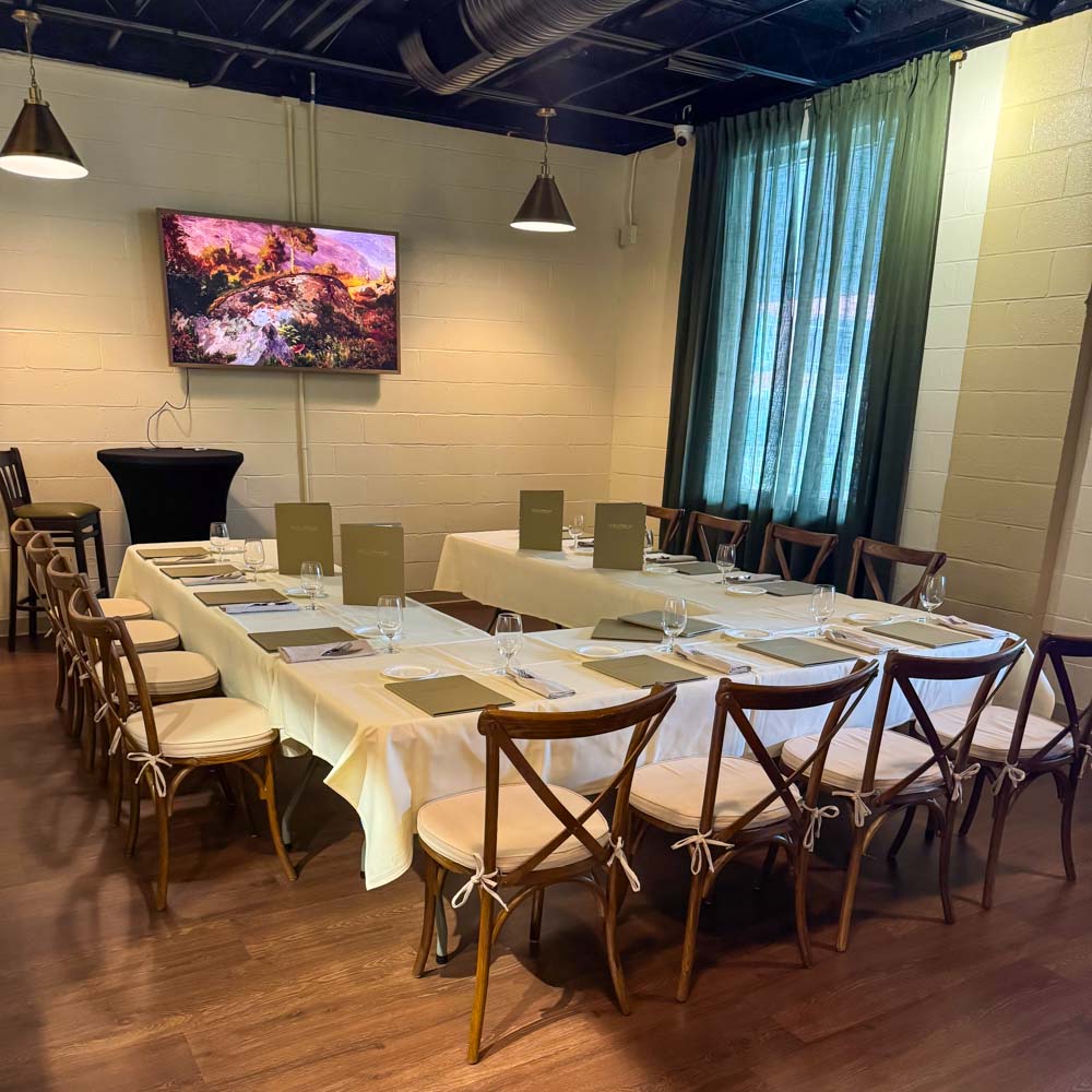 To ensure the perfect backdrop for your special occasion, we offer a diverse selection of customizable dining spaces designed to suit your unique event needs. Whether you envision an intimate gathering in a cozy, private setting, a vibrant cocktail reception on our charming outdoor patio, or a large-scale formal dinner in our main dining area, we have the ideal location to accommodate your guests.
