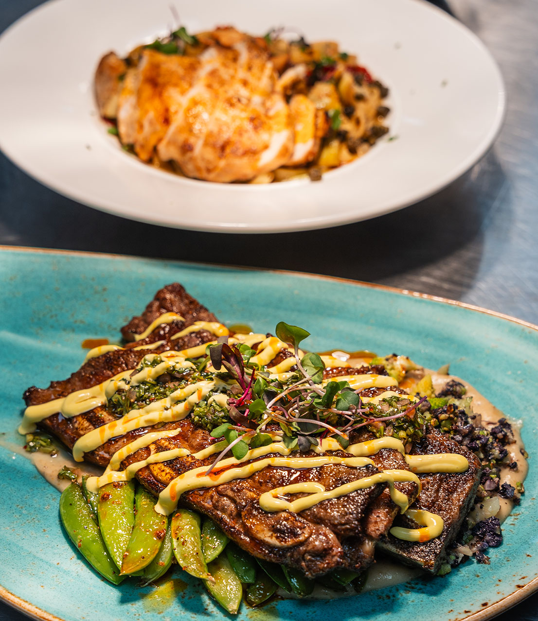 At Illyria, we've designed our restaurant with a variety of distinct settings to suit any occasion. For a more casual and social experience, pull up a chair at our elegant bar, the perfect spot to enjoy a handcrafted cocktail and a light bite while soaking in the vibrant atmosphere. If you're seeking a more private meal, settle into one of our plush, intimate booths, which offer an ideal setting for a romantic dinner or quiet conversation. And for those milestone moments and larger gatherings, our versatile private event spaces provide a sophisticated and customizable backdrop for everything from corporate functions to family celebrations, ensuring a memorable experience for all your guests.