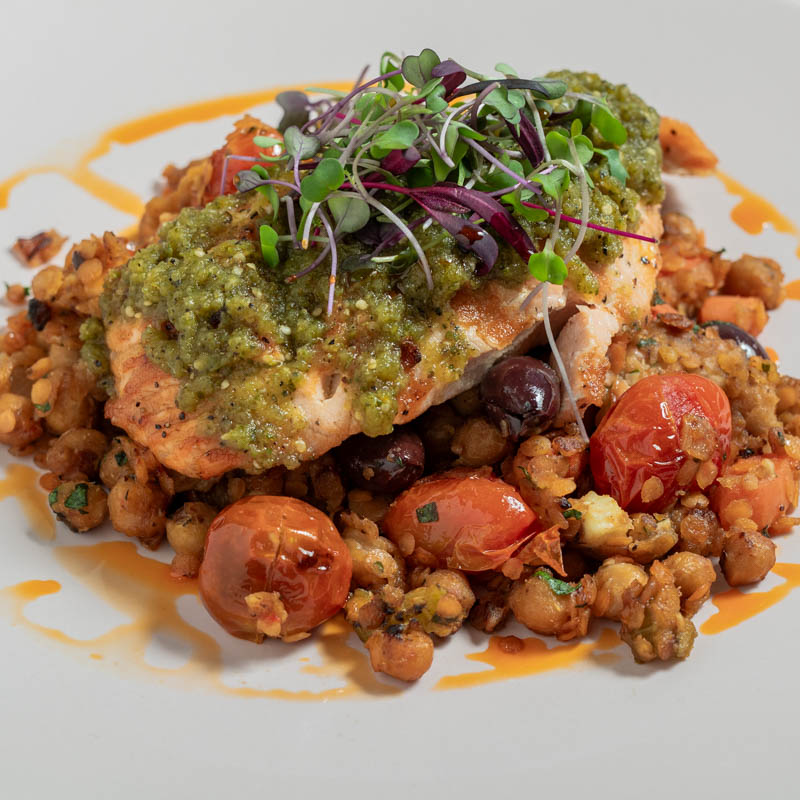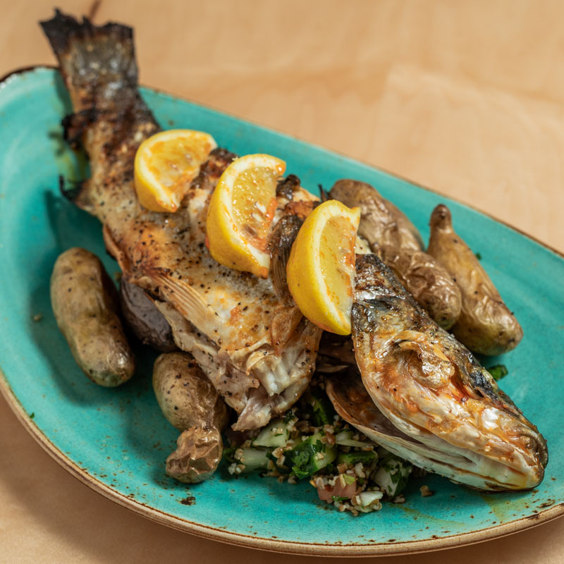 The vibe is upscale but approachable, built around the way people actually want to eat. Whether that means splitting a round of mezze like patatas bravas and spicy feta with drinks, or sitting down to a full service of baked branzino or a rack of lamb, the kitchen delivers bold, straightforward flavors. The gallery below provides a direct, unfiltered look at the plates and ingredients that define the menu.